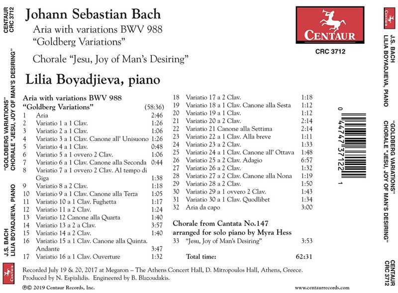A lively, refreshing and modern interpretation of this timeless masterpiece: Johan Sebastian Bach's monumental Goldberg Variations played by Lilia Boyadjieva