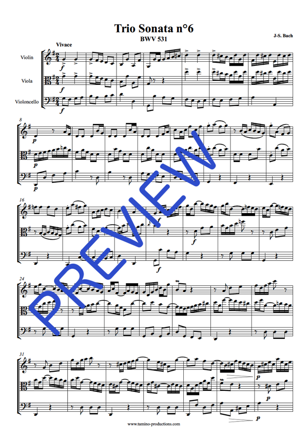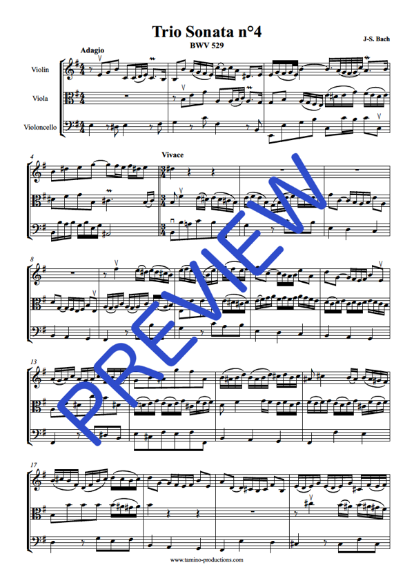 | Pages | 80 (Full Score) + 41 (Violin) + 42 (Viola) + 29 (Cello) + 2 (Cover). You can also purchase each Trio Sonata separately (follow the links below). |