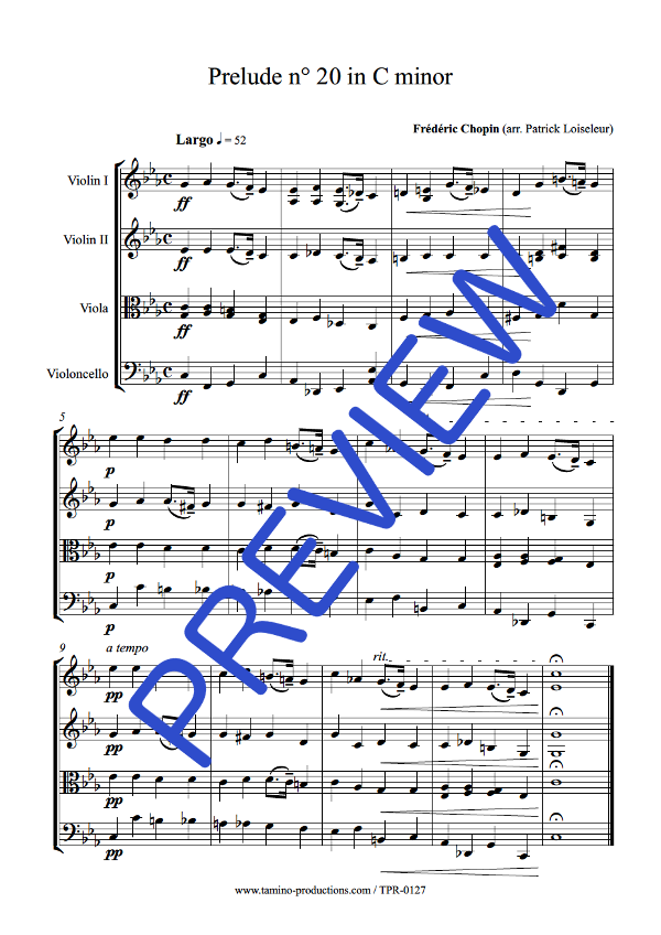 | Synopsis | This is an extract from the book of 24 Preludes of Frédéric Chopin arranged for String Quartet. |