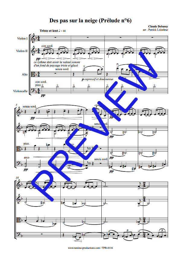 Ce rythme doit avoir la valeur sonore d'un fond de paysage triste et glacé... Claude Debussy's wonderful Prelude n°6 now available for string Quartet.