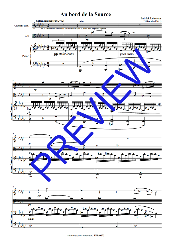 The very first published work of Patrick Loiseleur. "Near the Source..." a tender dialogue between Viola and Clarinet in a mix of romantic and impressionist styles