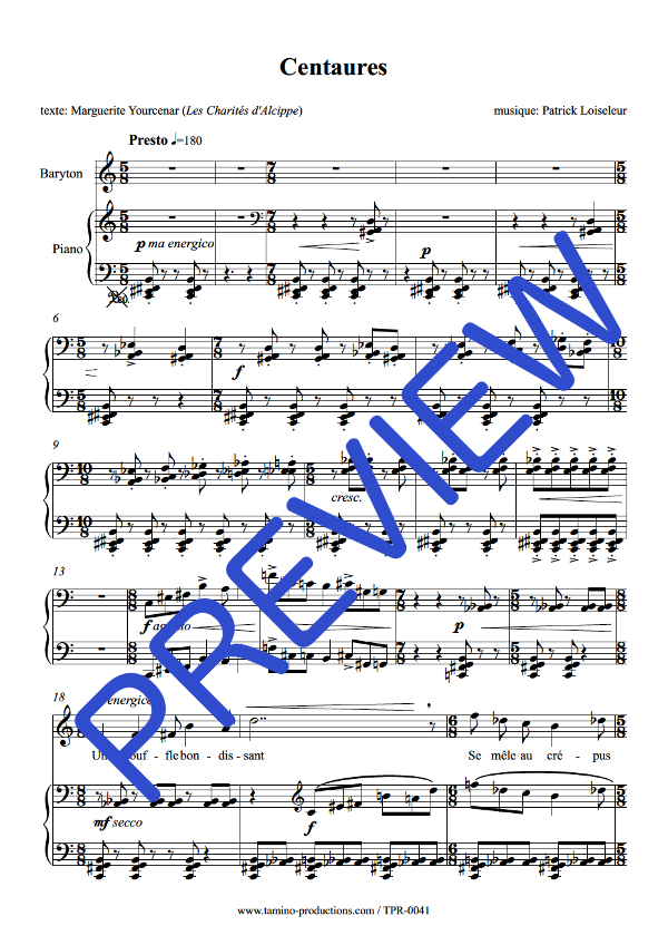 The wonderful poem Centaures from Marguerite Yourcenar describes the wonder (and maybe the terror) inspired by those monstrous creatures, half-human, half-horse. This song was commissionned by the french baritone L'Oiseleur des Longchamps for his disc "Chevauchées Lyriques, the Horses Song's Album" (2012, Hybrid music). |