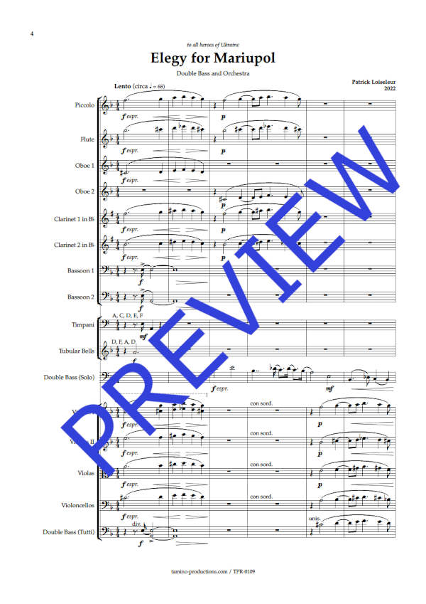 | Related scores | Elegy For Mariupol, for Double Bass and Piano (Loiseleur) |