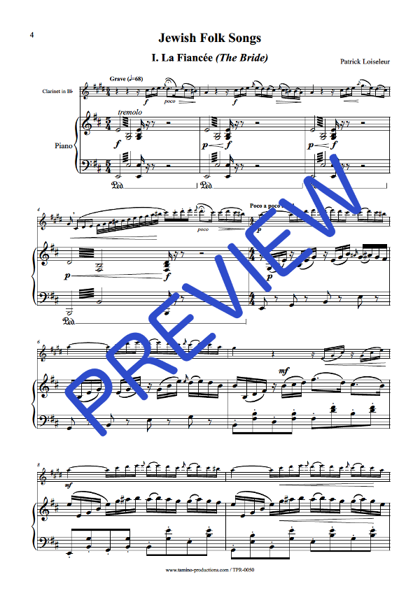 | Synopsis | Three pieces for Clarinet in Bb and Piano, in the style of jewish folk songs: