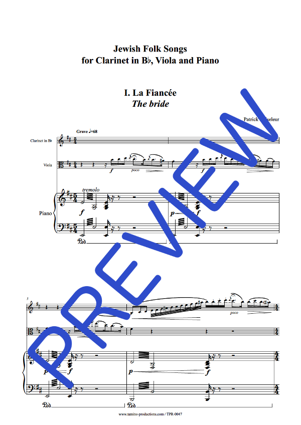 | Synopsis | Three pieces for Clarinet in Bb and Piano, in the style of jewish folk songs: