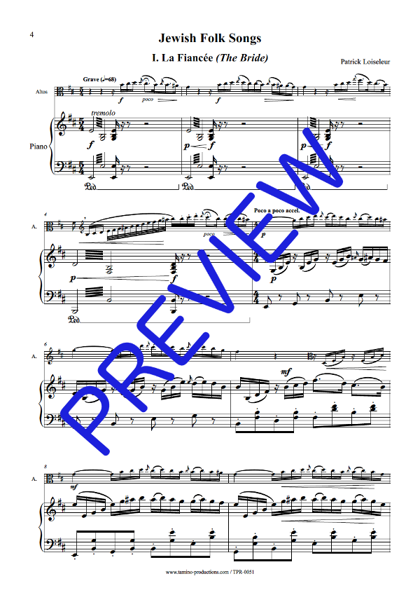 | Related scores | Jewish Folk Songs for Clarinet, Viola and Piano (Loiseleur) |
